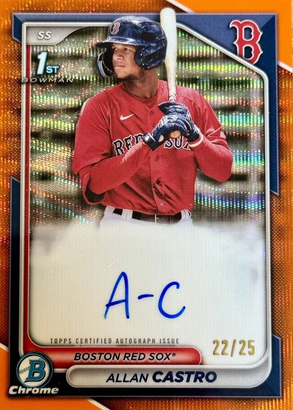 2024 Bowman Chrome Allan Castro Red Sox 1st Orange Wave Auto /25