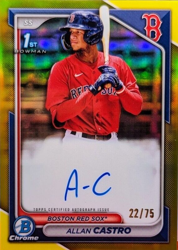 ALLAN CASTRO 2024 BOWMAN CHROME 1ST YELLOW REFRACTOR AUTO SP /75 RED SOX 💎 GEM