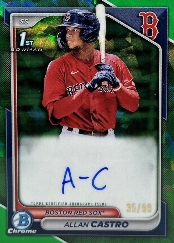2024 Bowman Chrome Sapphire Allan Castro Green Refractor 1st Auto #/99 Red Sox