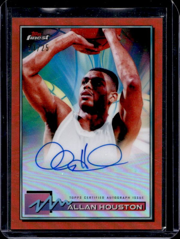The Allan Houston 2021 Topps Finest #FA-AH Autographs - Orange /25 card is 1 of 23 Allan Houston's card variations in the 2021 Topps Finest set being tracked by Sports Card Investor, including Base, Refractor, Atomic /299, Purple /250, and Speckle /199.