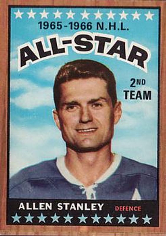 The Allan Stanley 1966 Topps #128 Base card is 1 of 2 Allan Stanley's card variations in the 1966 Topps set being tracked by Sports Card Investor, including Base.