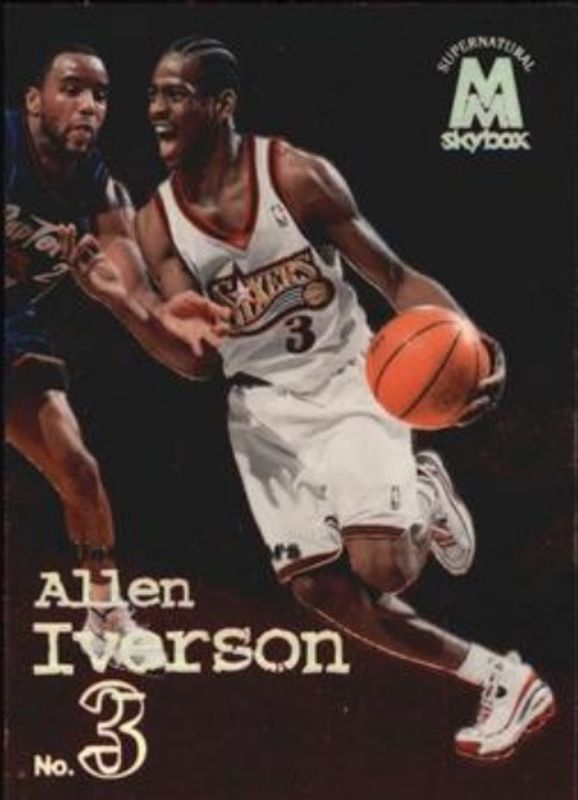 The Allen Iverson 1998 Skybox Molten Metal #139 Base card is 1 of 7 Allen Iverson's card variations in the 1998 Skybox Molten Metal set being tracked by Sports Card Investor, including Xplosion, Supernatural - Fusion /250, Supernatural - Titanium Fusion /40, Autographics, and Fusion /250.
