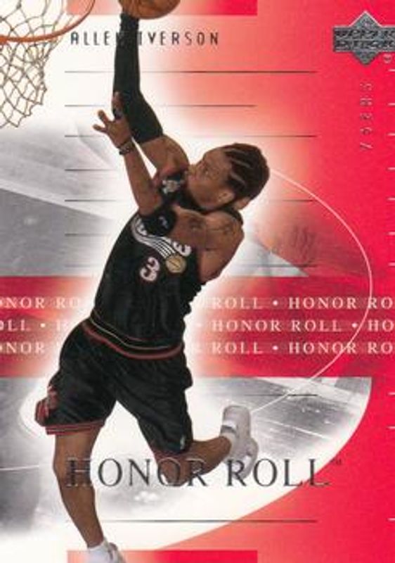 The Allen Iverson 2001 Upper Deck Honor Roll #64 Base card is 1 of 3 Allen Iverson's card variations in the 2001 Upper Deck Honor Roll set being tracked by Sports Card Investor, including All NBA Authentic Jerseys, and Fab Fives The All-Stars.