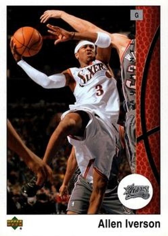 The Allen Iverson 2002 Upper Deck Authentics #62 Base card is 1 of 5 Allen Iverson's card variations in the 2002 Upper Deck Authentics set being tracked by Sports Card Investor, including Gold /250, Rainbow /50, Stat Patterns /500, and 100 Percent Amazing /100.