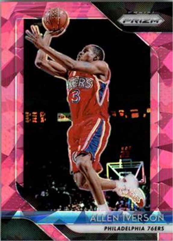 The Allen Iverson 2018 Prizm #45 Pink Ice card is 1 of 40 Allen Iverson's card variations in the 2018 Prizm set being tracked by Sports Card Investor, including Base, Choice Blue Yellow Green, Fast Break, Green, and Purple Wave.