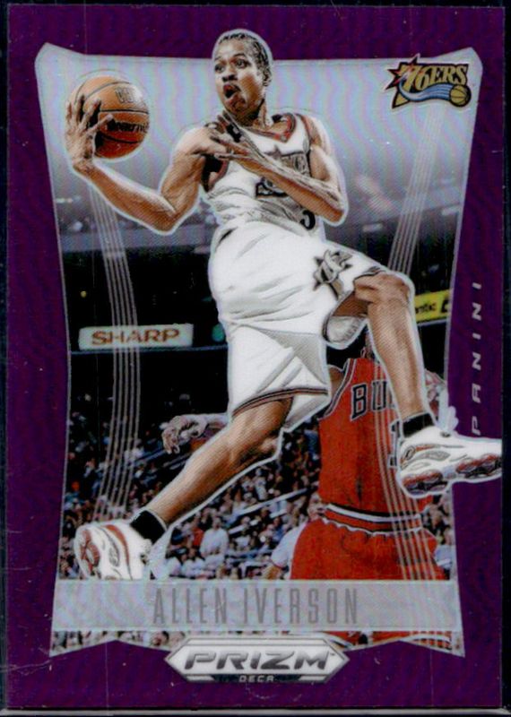 The Allen Iverson 2023 Prizm Deca #46 Purple /99 card is 1 of 25 Allen Iverson's card variations in the 2023 Prizm Deca set being tracked by Sports Card Investor, including Base, Silver, Red /199, Blue /149, and Orange /49.