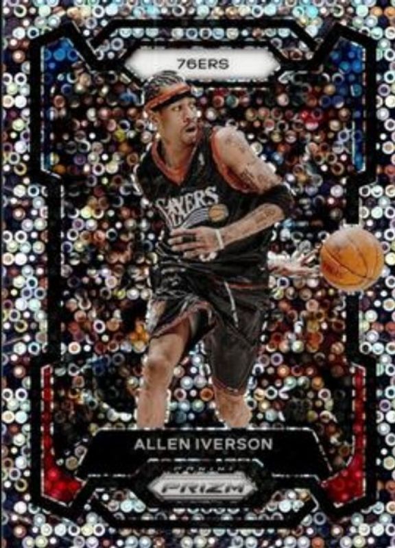 The Allen Iverson 2023 Prizm #184 Fast Break card is 1 of 75 Allen Iverson's card variations in the 2023 Prizm set being tracked by Sports Card Investor, including Base, Blue Wave, Choice Blue Yellow Green, Green, and Green Ice.