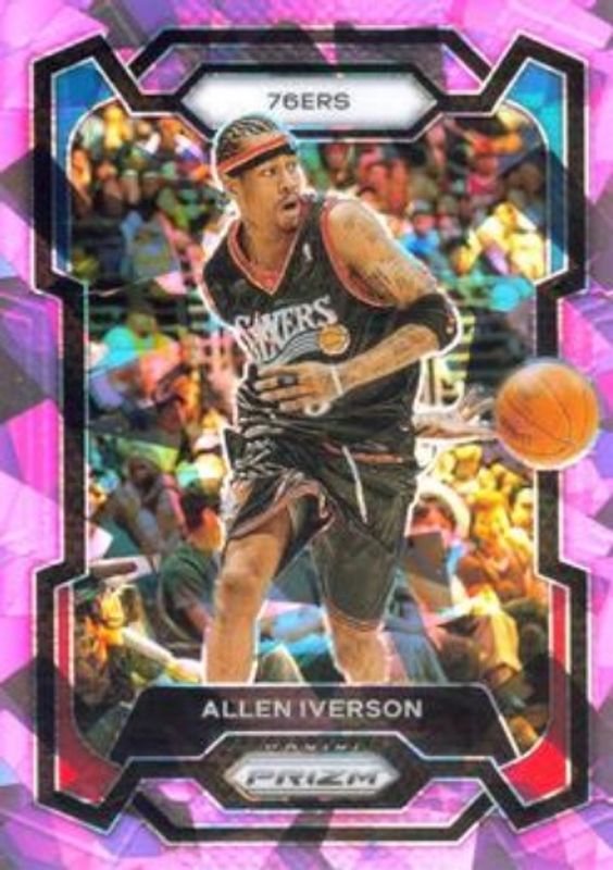 The Allen Iverson 2023 Prizm #184 Pink Ice card is 1 of 75 Allen Iverson's card variations in the 2023 Prizm set being tracked by Sports Card Investor, including Base, Blue Wave, Choice Blue Yellow Green, Fast Break, and Green.
