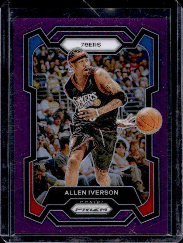 The Allen Iverson 2023 Prizm #184 Purple /99 card is 1 of 75 Allen Iverson's card variations in the 2023 Prizm set being tracked by Sports Card Investor, including Base, Blue Wave, Choice Blue Yellow Green, Fast Break, and Green.