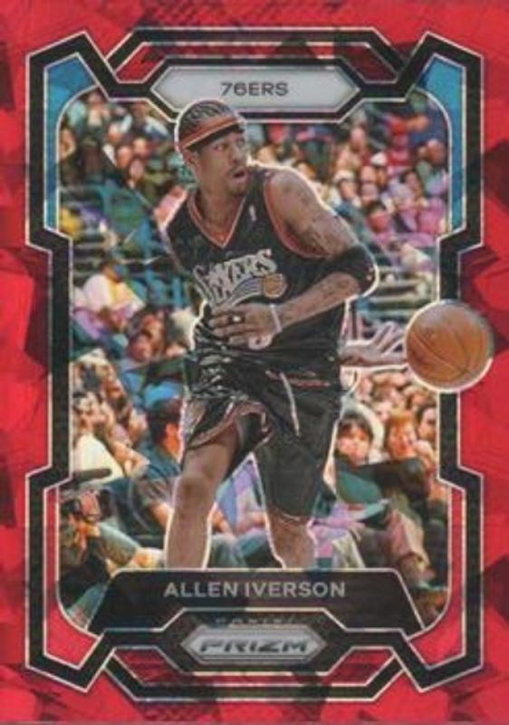 The Allen Iverson 2023 Prizm #184 Red Ice card is 1 of 75 Allen Iverson's card variations in the 2023 Prizm set being tracked by Sports Card Investor, including Base, Blue Wave, Choice Blue Yellow Green, Fast Break, and Green.
