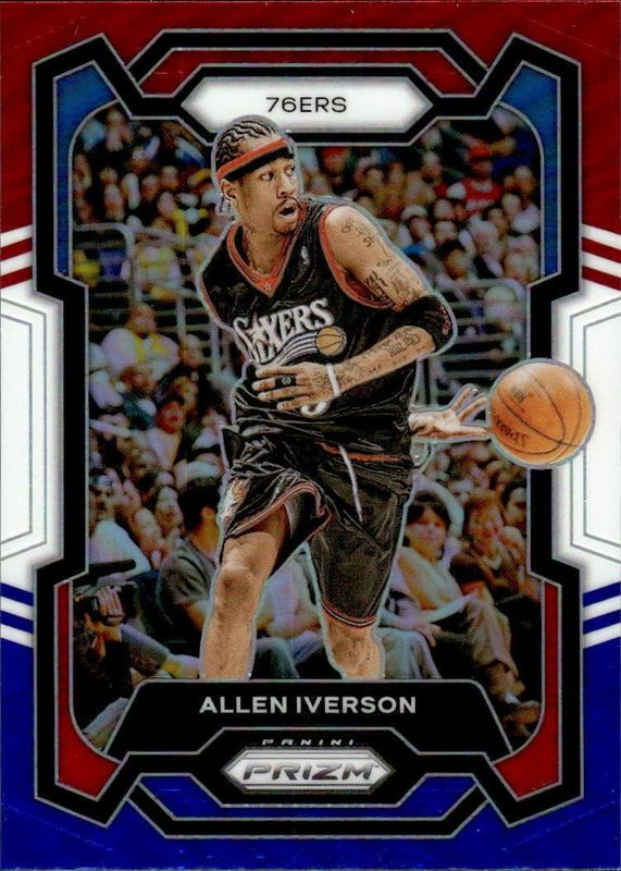 The Allen Iverson 2023 Prizm #184 Red White Blue card is 1 of 75 Allen Iverson's card variations in the 2023 Prizm set being tracked by Sports Card Investor, including Base, Blue Wave, Choice Blue Yellow Green, Fast Break, and Green.