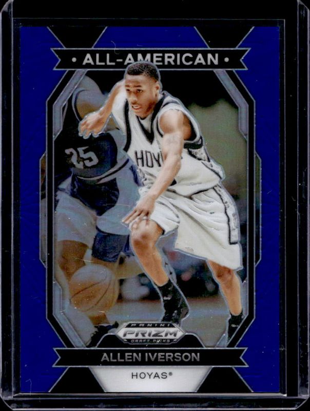 The Allen Iverson 2024 Prizm Draft Picks #18 All-American - Blue /199 card is 1 of 119 Allen Iverson's card variations in the 2024 Prizm Draft Picks set being tracked by Sports Card Investor, including #33 Base, #33b Base, #33 Green, #33b Green, and #33 Green Wave.