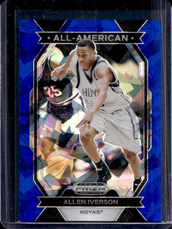 The Allen Iverson 2024 Prizm Draft Picks #18 All-American - Blue Ice /99 card is 1 of 119 Allen Iverson's card variations in the 2024 Prizm Draft Picks set being tracked by Sports Card Investor, including #33 Base, #33b Base, #33 Green, #33b Green, and #33 Green Wave.