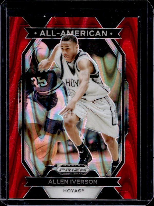The Allen Iverson 2024 Prizm Draft Picks #18 All-American - Red Seismic /225 card is 1 of 119 Allen Iverson's card variations in the 2024 Prizm Draft Picks set being tracked by Sports Card Investor, including #33 Base, #33b Base, #33 Green, #33b Green, and #33 Green Wave.