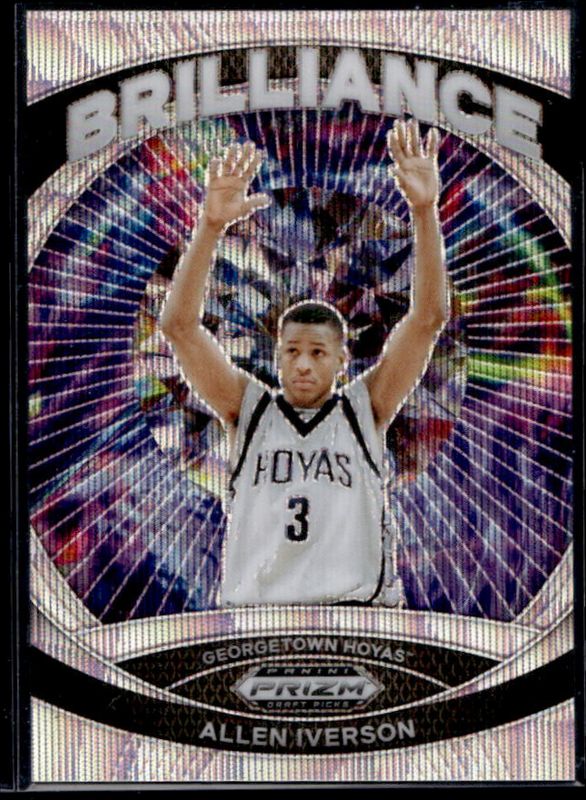 The Allen Iverson 2024 Prizm Draft Picks #18 Brilliance - Wave /99 card is 1 of 119 Allen Iverson's card variations in the 2024 Prizm Draft Picks set being tracked by Sports Card Investor, including #33 Base, #33b Base, #33 Green, #33b Green, and #33 Green Wave.