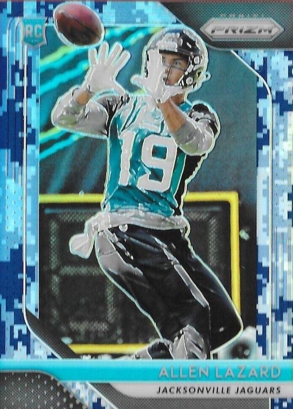 This card is 1 of 22 Allen Lazard's card variations in the 2018 Prizm set being tracked by Sports Card Investor, including Base, Disco, Green, Lazer, and Neon Green Pulsar.