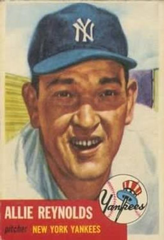 The Allie Reynolds 1953 Topps #141b Base card is 1 of 3 Allie Reynolds' card variations in the 1953 Topps set being tracked by Sports Card Investor, including #141 Base, and #141a Base.