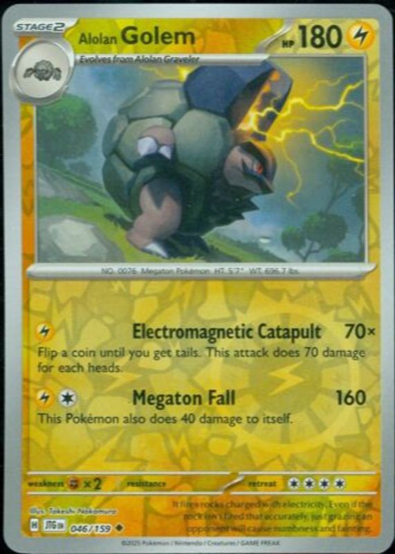 Alolan Golem 2025 Scarlet & Violet: Journey Together #046/159 Reverse Holo RAW TCG (LIGHTLY PLAYED) Price Guide