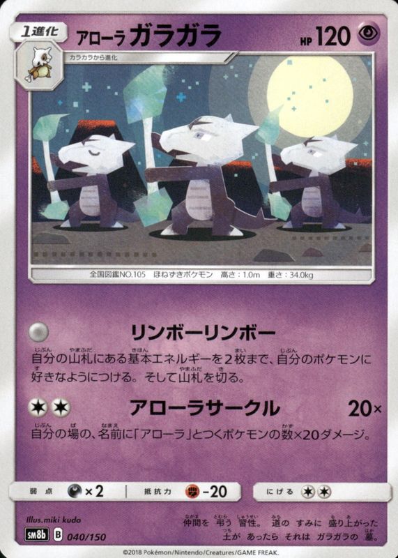 Alolan Marowak 2018 Japanese Sun & Moon: GX Ultra Shiny #040/150 Base RAW TCG (LIGHTLY PLAYED) Price Guide
