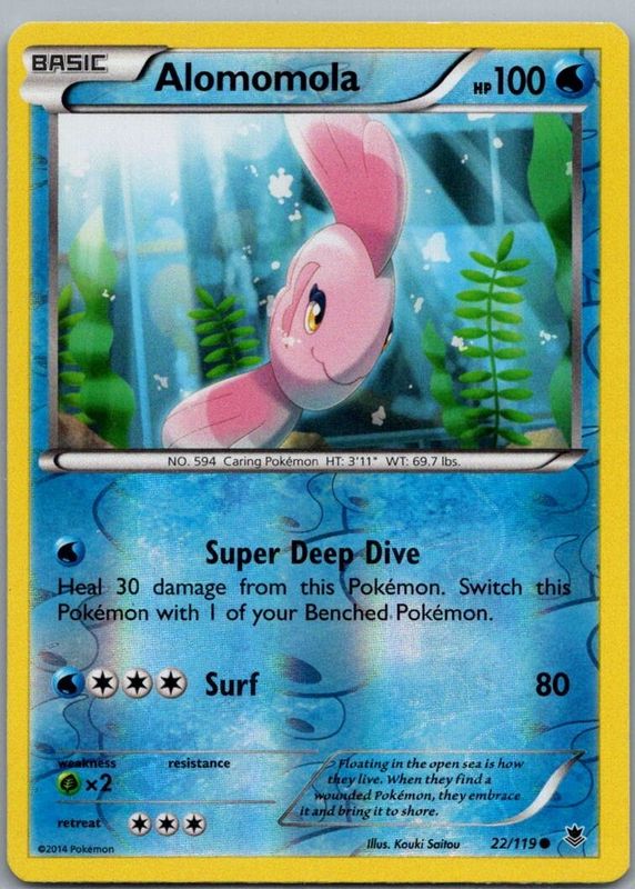 The Alomomola 2014 XY: Phantom Forces #022/119 Reverse Holo card in Raw TCG (Lightly Played) condition has not changed in price in the last 30 days and was last sold for $1.35 .