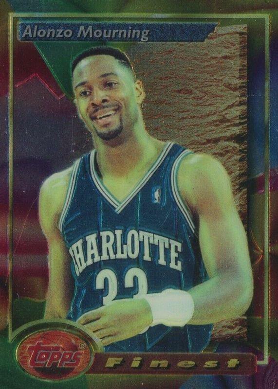 This card is 1 of 3 Alonzo Mourning's card variations in the 1993 Topps Finest set being tracked by Sports Card Investor, including Refractor, and #201 Refractor.
