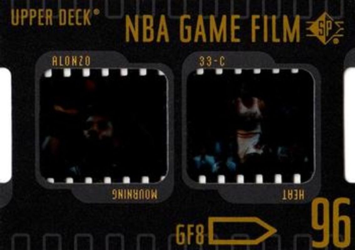 The Alonzo Mourning 1996 SP #GF8 Game Film card is 1 of 3 Alonzo Mourning's card variations in the 1996 SP set being tracked by Sports Card Investor, including Base, and Premium Collection.
