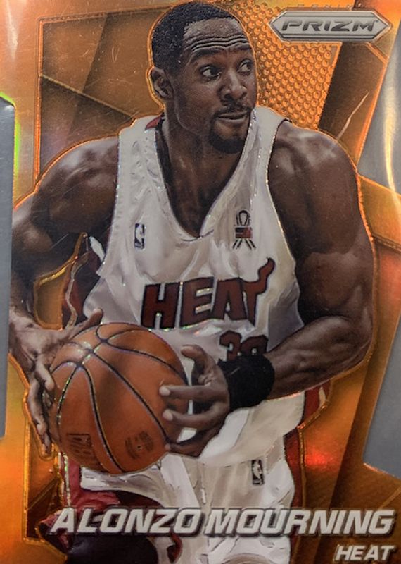 2014 PANINI PRIZM ALONZO MOURNING ORANGE DIE-CUT PRIZM #/139 MIAMI HEAT