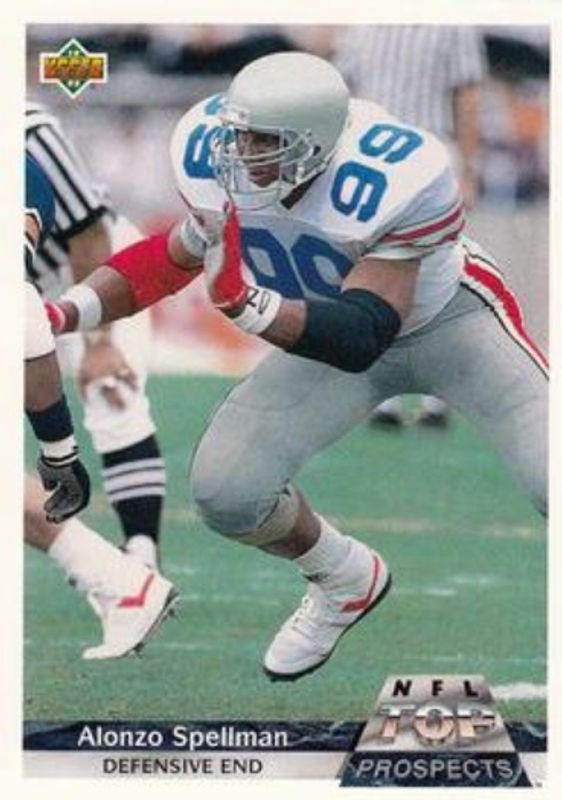 The Alonzo Spellman 1992 Upper Deck #G19 Gold Rookie card is 1 of 2 Alonzo Spellman's card variations in the 1992 Upper Deck set being tracked by Sports Card Investor, including Base.