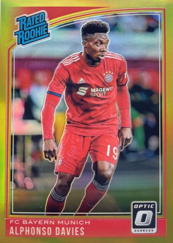 The Alphonso Davies 2018 Donruss #176 Optic - Gold /10 Rookie card in Raw condition has not changed in price in the last 30 days and was last sold for $1,750.00 .
