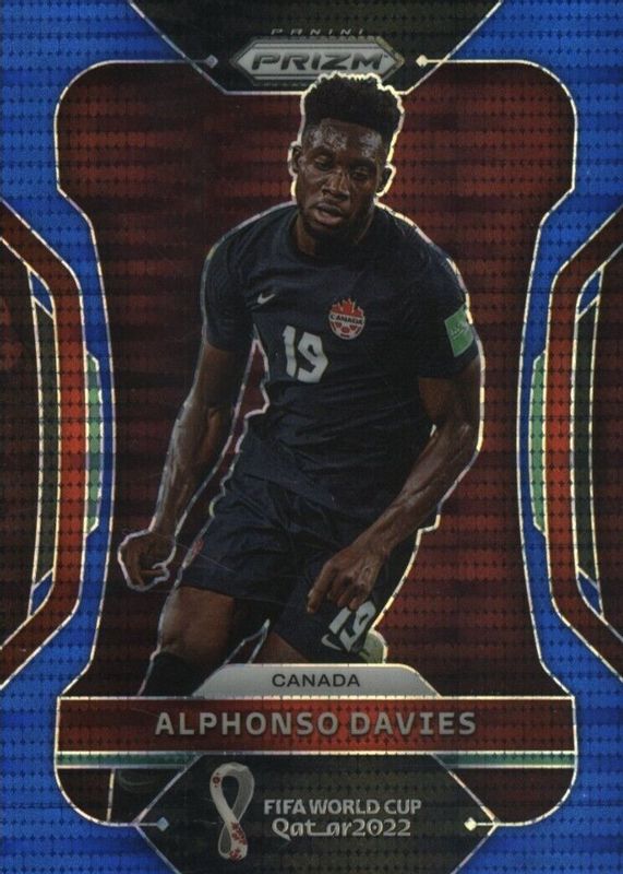 The Alphonso Davies 2022 Prizm World Cup #46 Breakaway Blue /49 card in Raw condition has not changed in price in the last 30 days and was last sold for $12.50 .