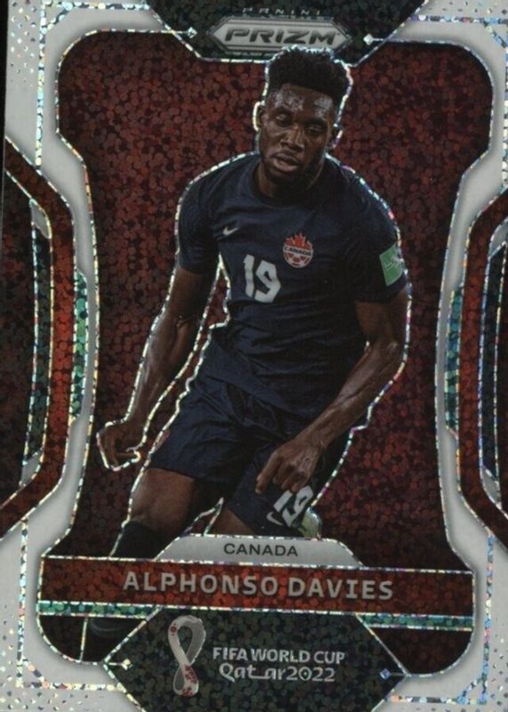 This card is 1 of 38 Alphonso Davies' card variations in the 2022 Prizm World Cup set being tracked by Sports Card Investor, including Breakaway, Choice Red, Green Ice, Green Wave, and Hyper.