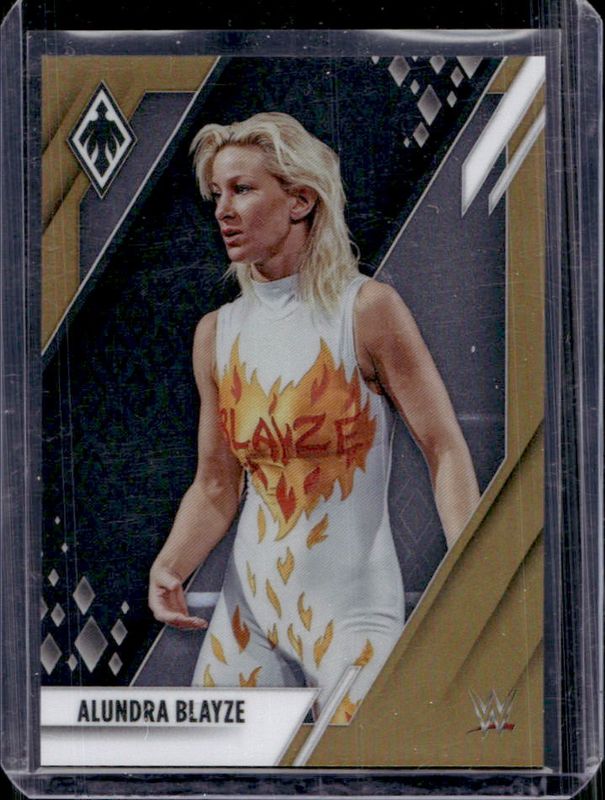 The Alundra Blayze 2022 Chronicles WWE #306 Gold /10 card is 1 of 17 Alundra Blayze's card variations in the 2022 Chronicles WWE set being tracked by Sports Card Investor, including #195 Base /99, #306 Base /99, #306 Bronze, #195 Bronze, and #306 Silver.