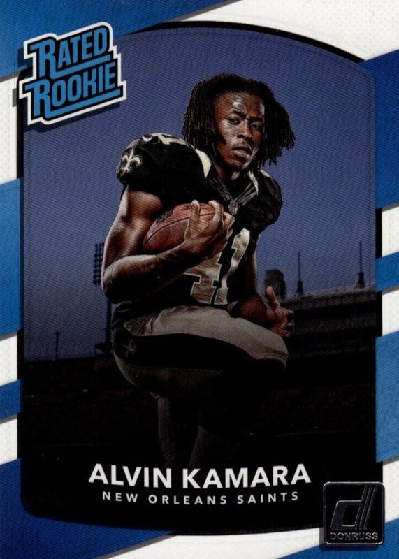 The Alvin Kamara 2017 Donruss #349 Base Rookie card in Raw condition has moved down -$0.21 (-10.4%) in the last 30 days and was last sold for $1.77 .