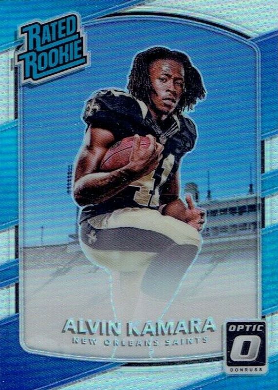 The Alvin Kamara 2017 Optic #199 Holo Rookie card in Raw condition has moved down -$1.99 (-19.9%) in the last 30 days and was last sold for $8.00 .