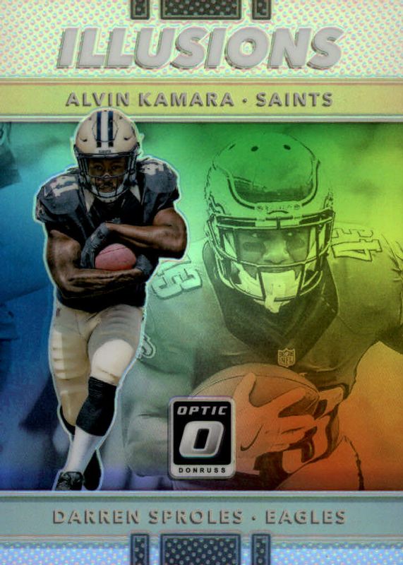 2017 Donruss Optic Illusions Silver Prizm Alvin Kamara Darren Sproles Rookie