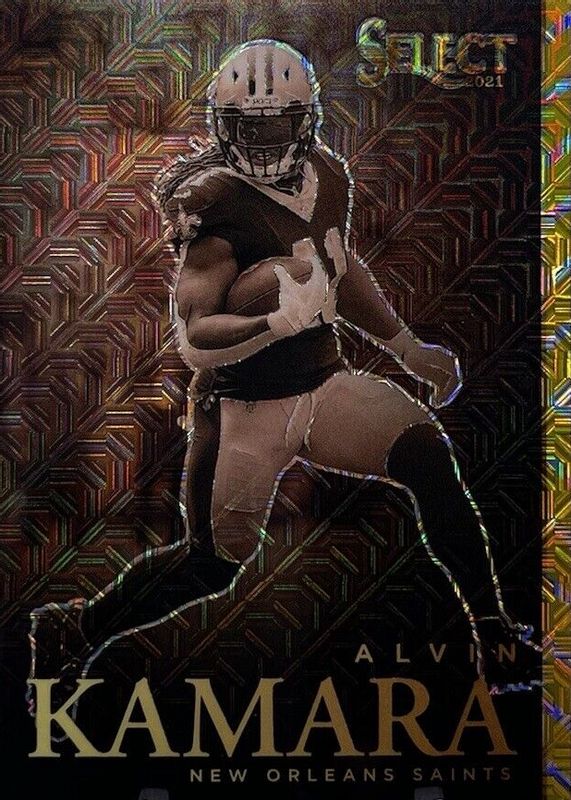 This card is 1 of 21 Alvin Kamara's card variations in the 2021 Select set being tracked by Sports Card Investor, including Artistic Selections /(SSP), Select Numbers - Zebra /(SSP), Snapshots - Zebra /(SSP), Turbocharged - Zebra /(SSP), and Select Numbers - Tie-Dye /25.