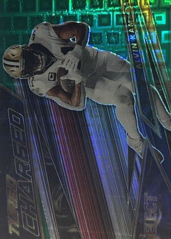 This card is 1 of 6 Alvin Kamara's card variations in the 2022 Select set being tracked by Sports Card Investor, including Turbocharged - Zebra /(SSP), Turbocharged - Tie-Dye /25, Turbocharged - Gold /10, Turbocharged - Green & Black Snakeskin /2, and Turbocharged - Black /1.