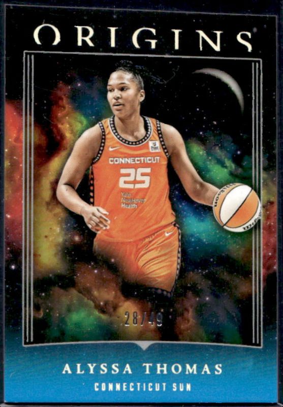 The Alyssa Thomas 2024 Origins WNBA #60 Teal /49 card is 1 of 13 Alyssa Thomas' card variations in the 2024 Origins WNBA set being tracked by Sports Card Investor, including Base, Red /99, Blue /75, Swirl /(SSP), and Purple /25.