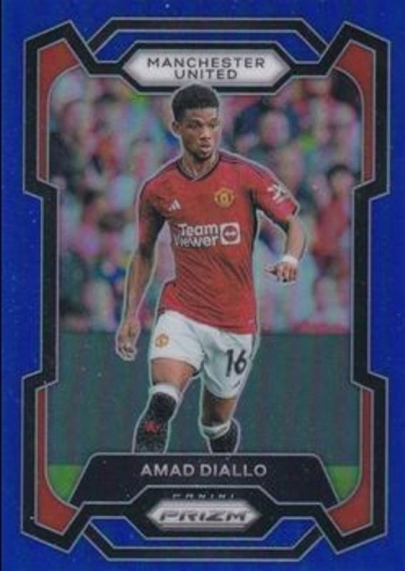 The Amad Diallo 2023 Prizm Premier League #52 Blue /299 card is 1 of 53 Amad Diallo's card variations in the 2023 Prizm Premier League set being tracked by Sports Card Investor, including Base, Blue Mosaic, Breakaway, Breakaway Orange, and Choice.