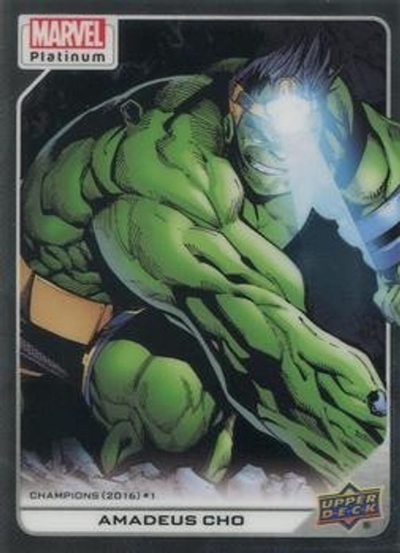 The Amadeus Cho 2023 Upper Deck Marvel Platinum #157 Base card is 1 of 30 Amadeus Cho's card variations in the 2023 Upper Deck Marvel Platinum set being tracked by Sports Card Investor, including Black Rainbow, Blue Rainbow, Blue Surge, Purple Rainbow, and Rainbow.