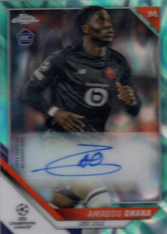 Best Prices Available For Sale of Amadou Onana 2021 Topps Chrome UEFA Champions League #CA-AO Autographs - Aqua Lava Refractor