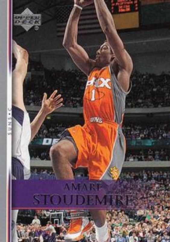 The Amar'e Stoudemire 2007 Upper Deck #51 Base card is 1 of 11 Amar'e Stoudemire's card variations in the 2007 Upper Deck set being tracked by Sports Card Investor, including Electric Court Gold, All NBA, Behind the Glass, Championship Court, and NBA All Star West Die-Cut.