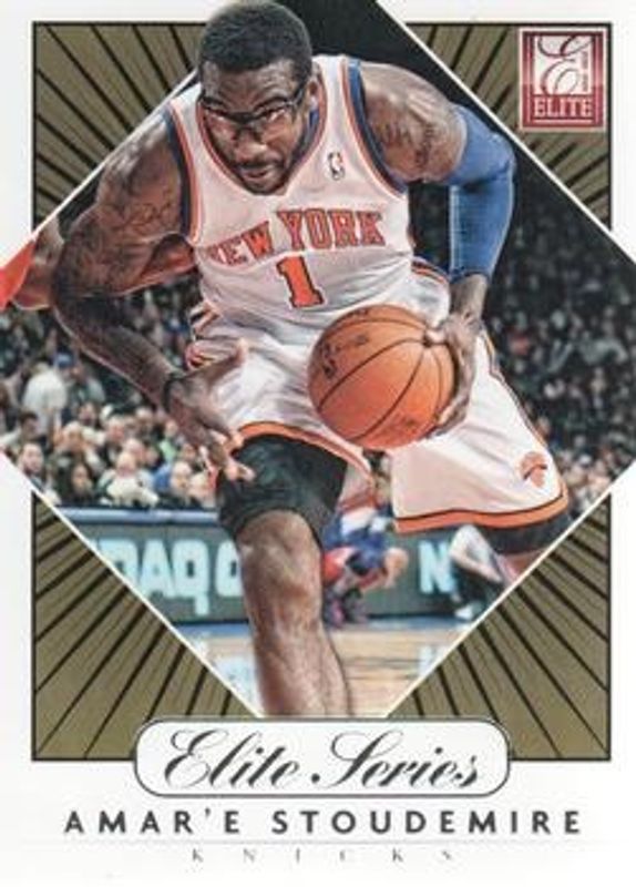 The Amar'e Stoudemire 2012 Elite #7 Elite Series card is 1 of 13 Amar'e Stoudemire's card variations in the 2012 Elite set being tracked by Sports Card Investor, including Base Rookie /599, Aspirations Die-Cut, Status Red Die-Cut, Status Gold Die-Cut /24, and Status Black Die-Cut /1.