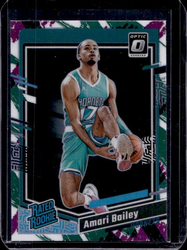 The Amari Bailey 2023 Optic #210 Jazz /(SSP) Rookie card is 1 of 68 Amari Bailey's card variations in the 2023 Optic set being tracked by Sports Card Investor, including Base, Blue Velocity, Checkerboard, Choice, and Choice Red & Green.