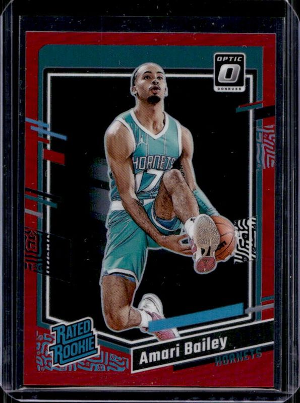 The Amari Bailey 2023 Optic #210 Red /99 Rookie card is 1 of 68 Amari Bailey's card variations in the 2023 Optic set being tracked by Sports Card Investor, including Base, Blue Velocity, Checkerboard, Choice, and Choice Red & Green.