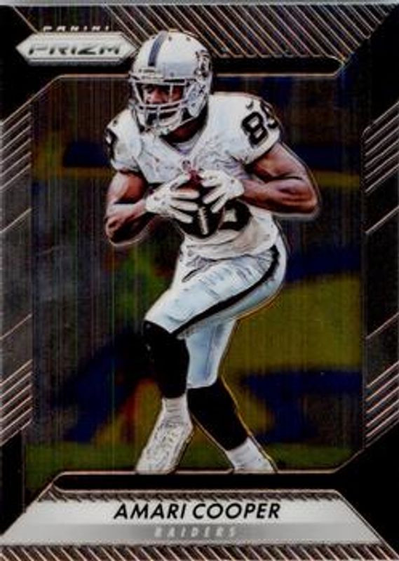 The Amari Cooper 2016 Prizm #56 Base card is 1 of 28 Amari Cooper's card variations in the 2016 Prizm set being tracked by Sports Card Investor, including Flash, Green, Pink, Red White Blue Disco, and Silver.