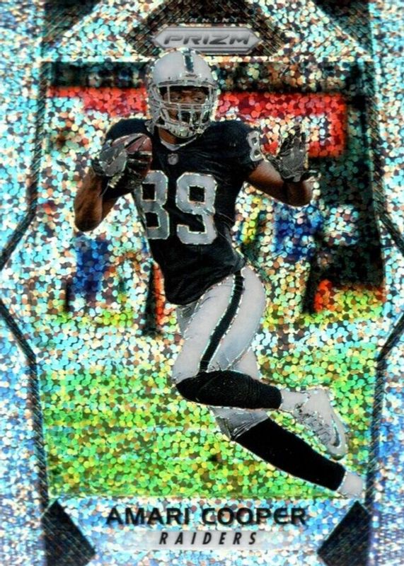 This card is 1 of 5 Amari Cooper's card variations in the 2017 Prizm set being tracked by Sports Card Investor, including Gold /10, FOTL Bronze Stars /(Print Run: 6), Gold Vinyl /5, and Black Finite /1.