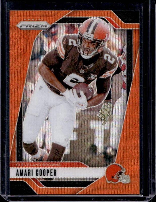 The Amari Cooper 2024 Prizm #66 Orange Wave /60 card is 1 of 83 Amari Cooper's card variations in the 2024 Prizm set being tracked by Sports Card Investor, including Base, Choice Blue Yellow Green, Choice Silver, Disco, and Green.