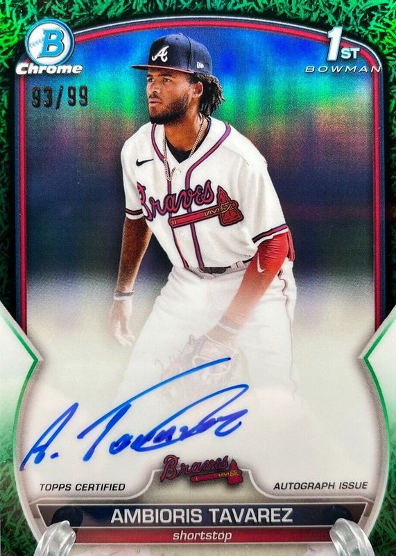 2023 Bowman Chrome 1st Ambioris Tavarez Green Grass Auto /99 #CPA-AT Braves