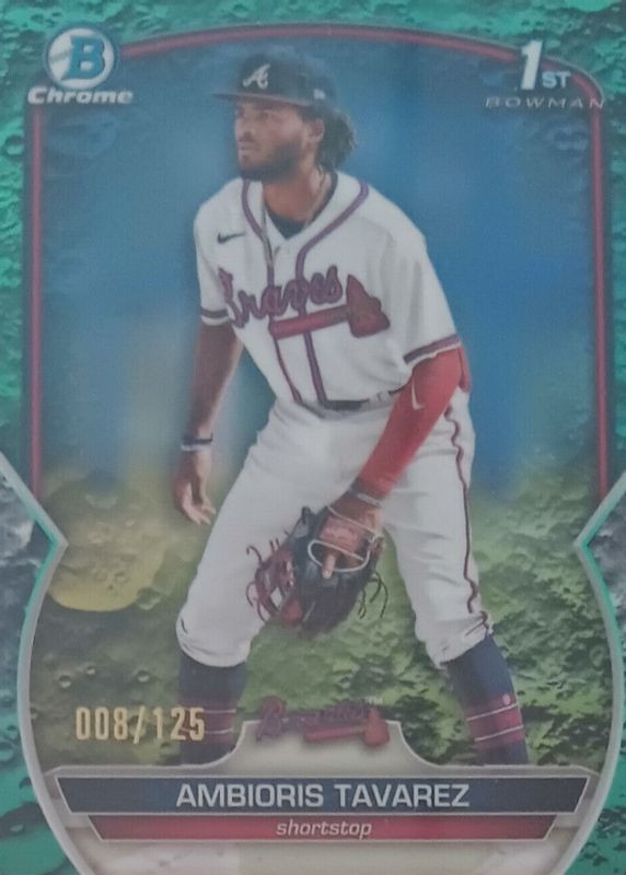 This card is 1 of 49 Ambioris Tavarez's card variations in the 2023 Bowman set being tracked by Sports Card Investor, including Chrome Prospects (1st), Chrome Prospects - Atomic Refractor (1st), Chrome Prospects - Lunar Glow Refractor (1st), Chrome Prospects - Pearl Refractor (1st), and Chrome Prospects - Refractor /499 (1st).